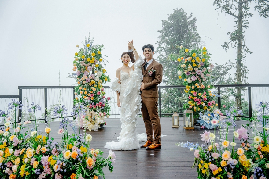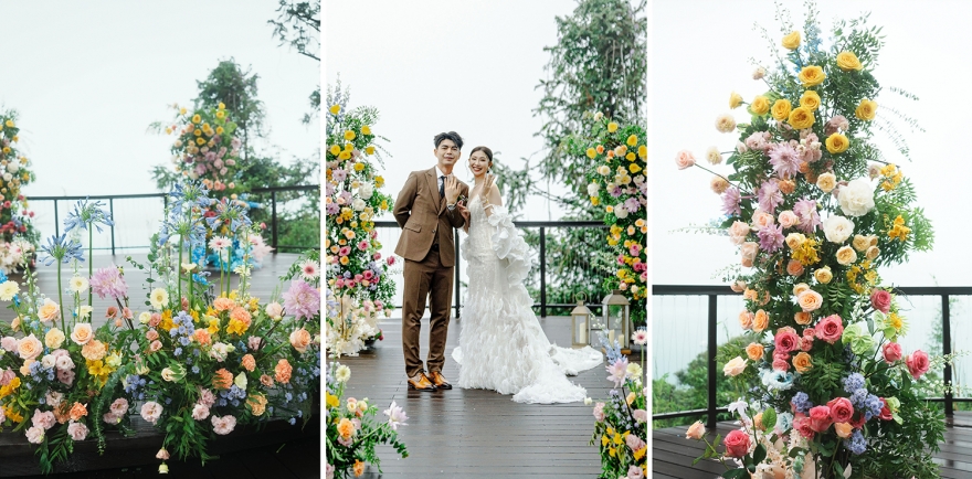 新人的誓言隨風飄散,與湖光、山色、色彩共鳴,溫柔又幸福