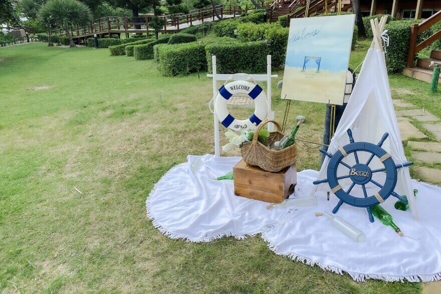 也可提醒賓客穿得輕鬆些,若有賓客想踩踩沙、踏踏浪,也可貼心準備放鞋子、洗腳的地方