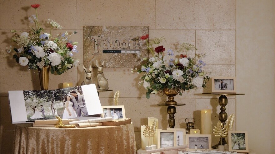 5. 收禮桌以及相本區是否有提供基本桌椅及桌巾?進出口動線的送客區,是否有乾淨的牆面或適當的深度。