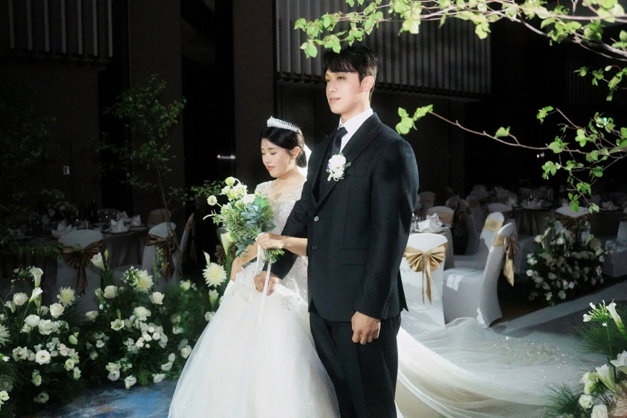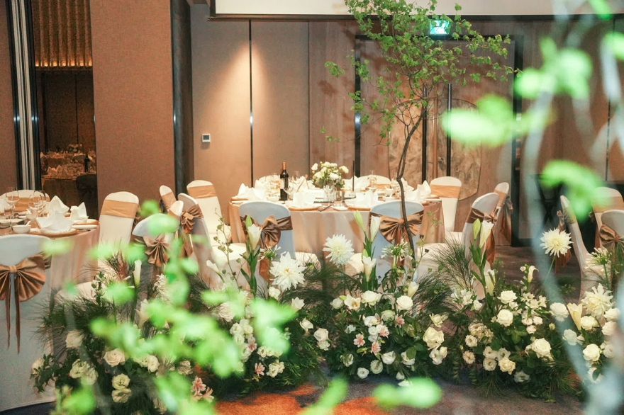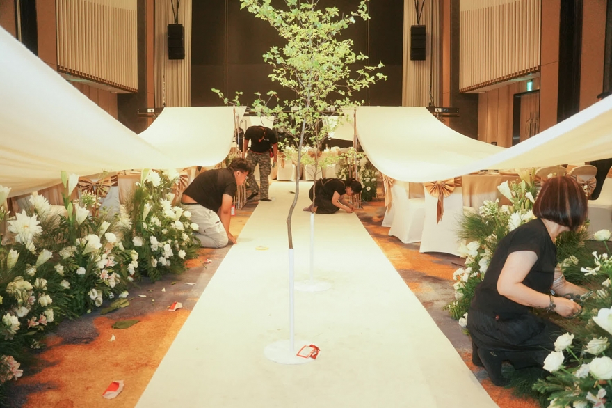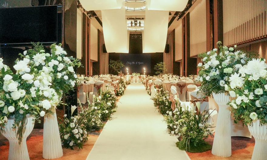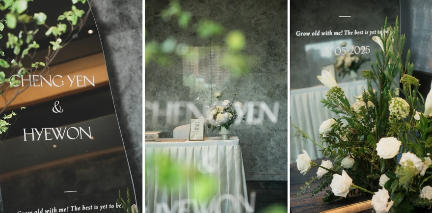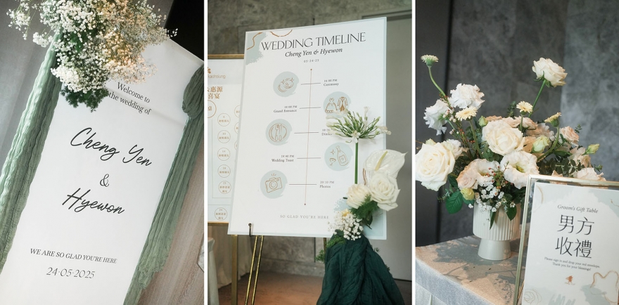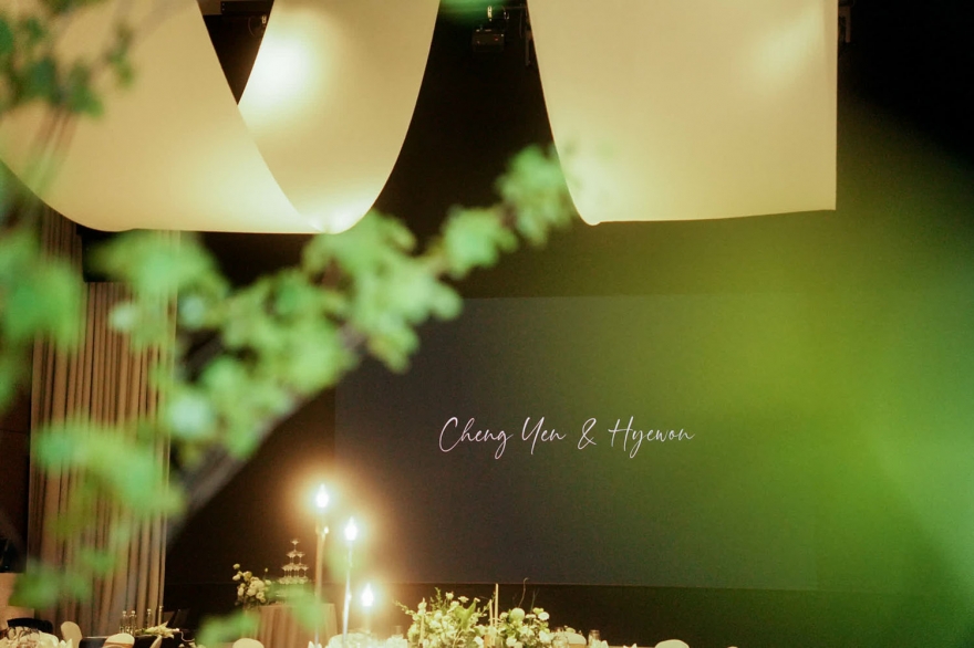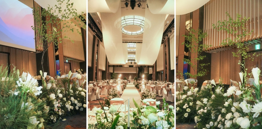 而韓國婚禮習慣以白綠色打造純淨優雅的空間感