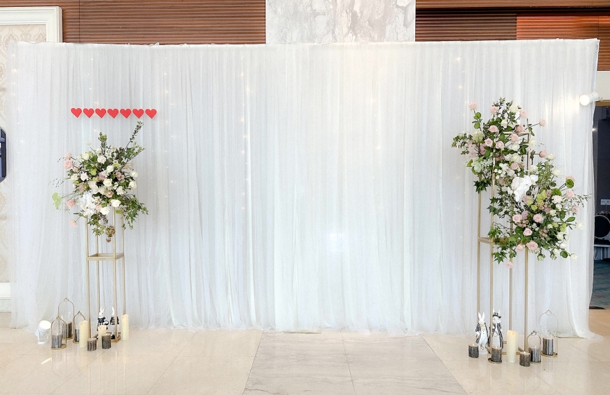 也可以適當地在紅毯起點,聖壇,司儀台,同心燭台等細節點綴