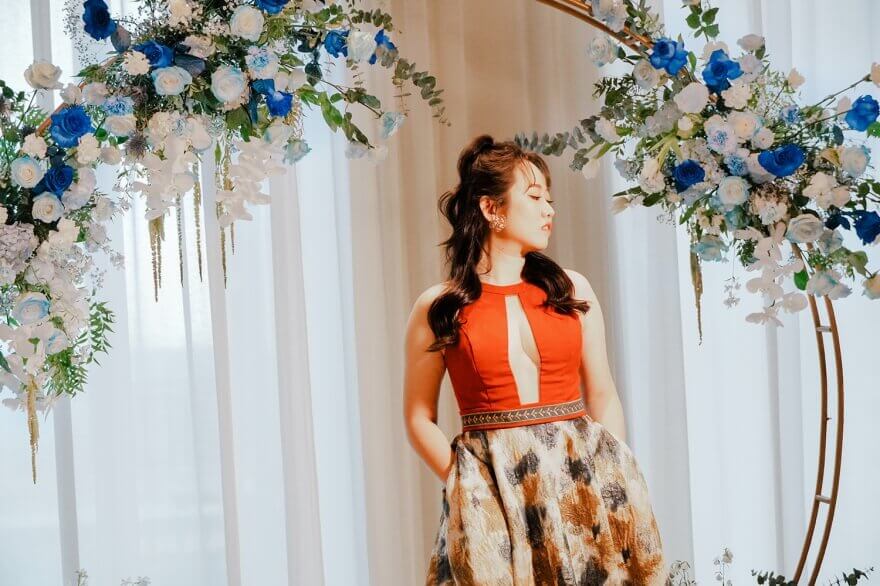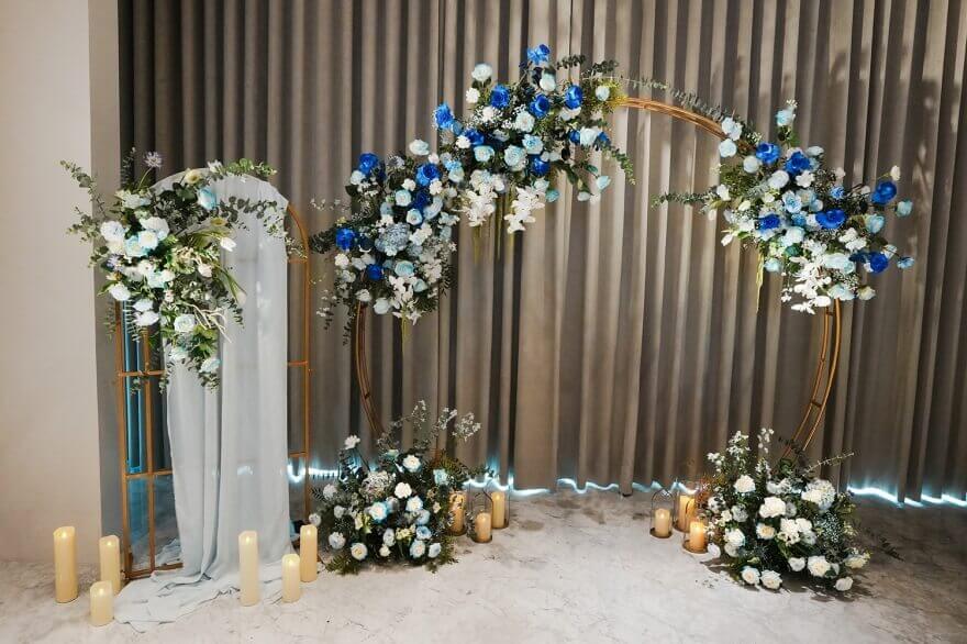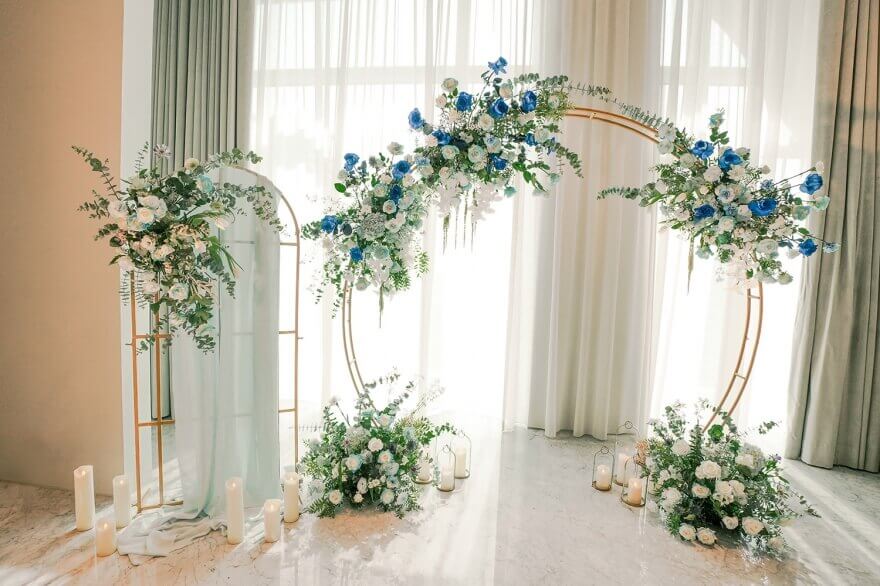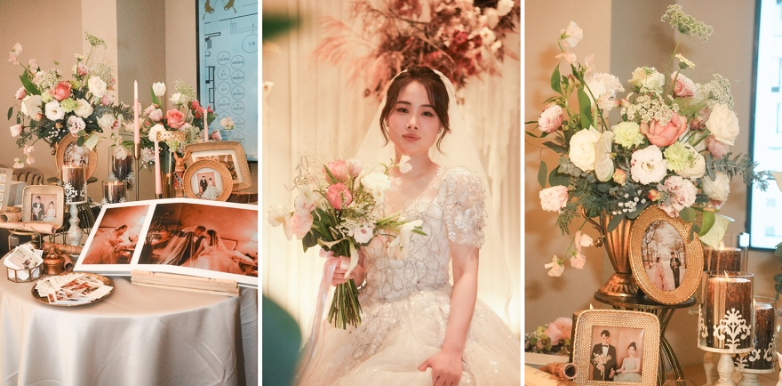 玫瑰金環吊燈極其浪漫,就像為兩人的婚禮加冕