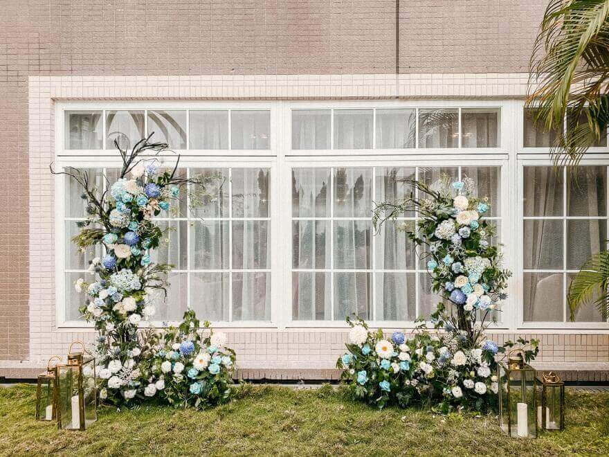 4. 飯店配套:免費包套背板重複出鏡率高,而且可能跟新人的主題風格不同,另外加購背板主題佈置或者其他大型鮮花拱門等佈置點綴